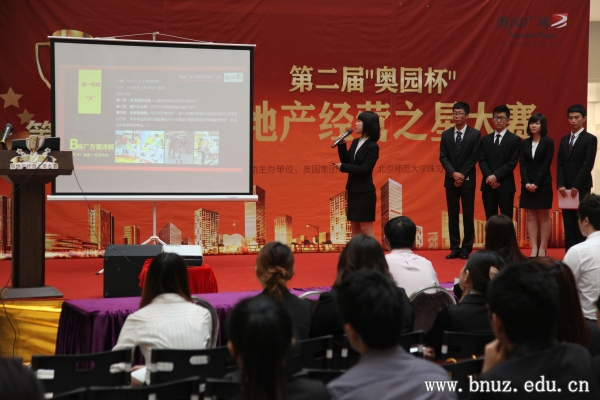 Carrying out by groups, the project of semi-finals was developing a one-year marketing plan for Aoyuan Plaza. As presented plans were of high quality, the designed number of 20 participants selected to the finals increased to 30. Presentations of sandbox should be made in the finals in taking Aoyuan Health Plaza as an example. In receiving interview after the competition, some judges said that BNUZ students were very impressive, who had not only shown great confidence, but also demonstrated strong abilities of quick response and communication skills.
