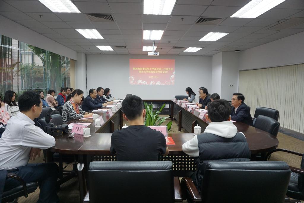 郭长江理事长在致辞中简要介绍了红十字运动与中国红十字会的发展历史,并表明了本次调研的主要目的。他表示“北师大珠海分校是国内最早开始培养公益慈善本科人才的高校,为行业培养出了一大批优秀的人才,在行业产生了广泛的影响”,“中国红十字会当前正在探索筹建相关学院和人才培养工作,希望从北师大珠海分校前期的探索中借鉴相关的经验,推动公益慈善人才的培养”。