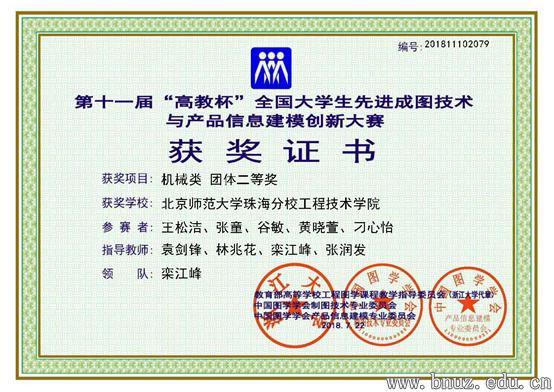 大赛设置了机械、建筑、道桥和水利四个专业类别的团体及个人竞赛。来自我校工程技术学院的9名参赛选手荣获产品数字化创新设计与3D打印技术一等奖、产品信息建模机械类团体二等奖。袁剑锋、林兆花、栾江峰和张润发4位老师获优秀指导教师奖。个人竞赛方面,2016级工业设计专业的王松洁同学和谷敏同学,2017级工业设计专业的黄晓萱同学和刘莹同学等四人获个人建模二等奖;2016级工业设计专业的张童同学和2017级工业设计专业的黄晓萱同学获个人尺规绘图三等奖。