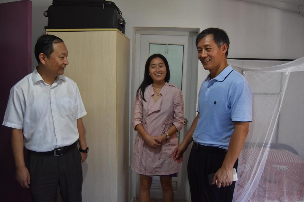 校领导们还走访了新生宿舍,向新生和家长了解报到安顿、入学准备等相关情况。