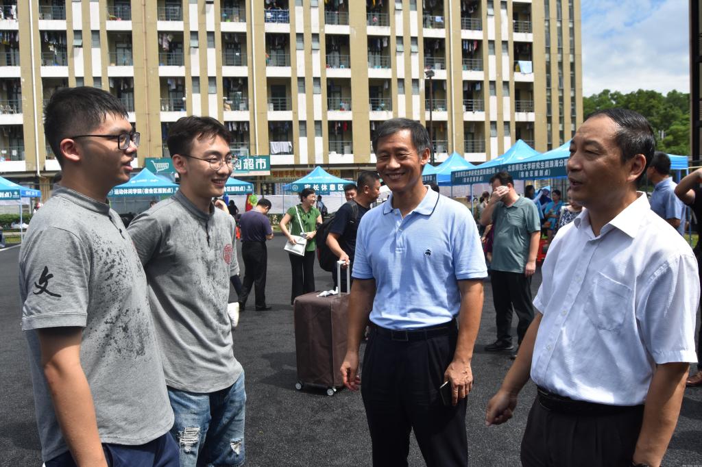 校领导看望和慰问各迎新站点。在各学院(部)的迎新点,校领导与迎新工作人员进行交谈,详细了解各学院(部)的迎新情况并对接下来的迎新工作做了进一步的指导;在各职能部门的迎新站点,校领导听取了各部门的迎新工作情况汇报,并强调了安保工作的重要性;校领导还同新生们进行了亲切交谈,鼓励他们在接下来的日子里要牢记“学为人师,行为世范”的校训,不忘初心,勤奋求学。