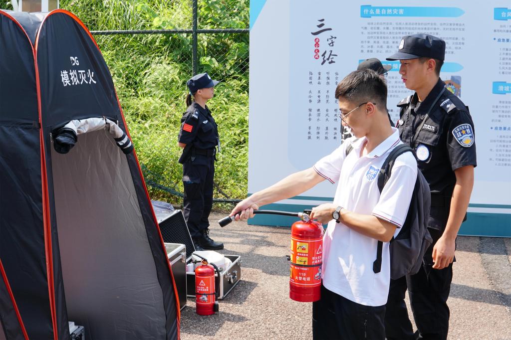 安全教育视频播放区有防骗防盗交通消防等方面内容的学生原创动漫视频循环播放;毒品样品展示区内,由高新区禁毒社工现场讲解毒品知识;消防灭火体验区,同学们通过操作模拟灭火器,掌握灭火器的使用方法。除此之外,还给同学们现场派发防诈骗及毒品安全知识宣传资料。