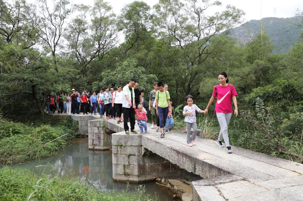 一切准备就绪后,教职工搭乘大巴前往位于普陀寺附近的长南迳古道香洲区入口,正式开启徒步行活动。长南迳古道全长约6公里,现有遗存约4公里,其开凿年代不详,于清雍正三年(公元1725年)重修,留下大量历史遗迹,据说是古时香山地区南朗、上栅、官塘等村民往来前山、澳门的主要通道。教职工们走过长南三孔桥,路过牵牛坑桥,在来仪亭、五溪亭眺望远方,在聚贤厅休息乘凉,一路上看见了创作于雍正三年的摩崖石刻,感受了心悦池山泉的清凉。教职工们用近一百分钟走完全程,抵达位于文华苑附近的高新区出入口,本次徒步行活动顺利结束