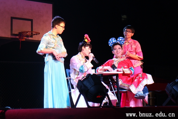 The show was unveiled by a dance of eastern style from Jiajia, special guest of that night,. Then the western orchestra and the Chinese orchestra co-played a symphony, and demonstrated the diversity of artistic style. The dance from the Chinese Folk Dance Group brought a beautiful picture of spring in front of the audience. Other performances like comedy shows, Hip-hop dancing and ballroom-dancing were also successfully staged. The entire show was a splendid demonstration of the youth and vitality of BNUZ students.
