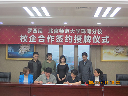Before the signing ceremony, both sides exchanged enlightening ideas about the practical teaching and scientific-research on majors like graphic design and industrial design. Mr. Jiang Guoliang, General Manager of Rossinni expressed his great willingnesss to further the cooperation with BNUZ on the establishment of teaching base and other communications. Later that day, the agreement of the practice teaching base was signed.